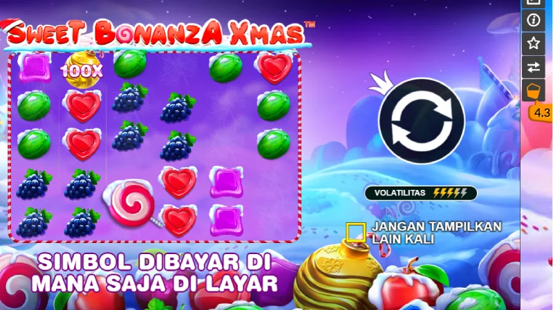 Apabila memasuki musim natal, dengan bermain slot Sweet Bonanza Xmas sangatlah pas momennya untuk bermain, karena tampilan gamenya yang seperti di kutub utara, juga penuh dengan salju dan adanya santa claus, dengan suara khasnya ho ho ho! begitalah suaranya ketika free spin Anda dapat, dan saat itulah Anda pesta natal.